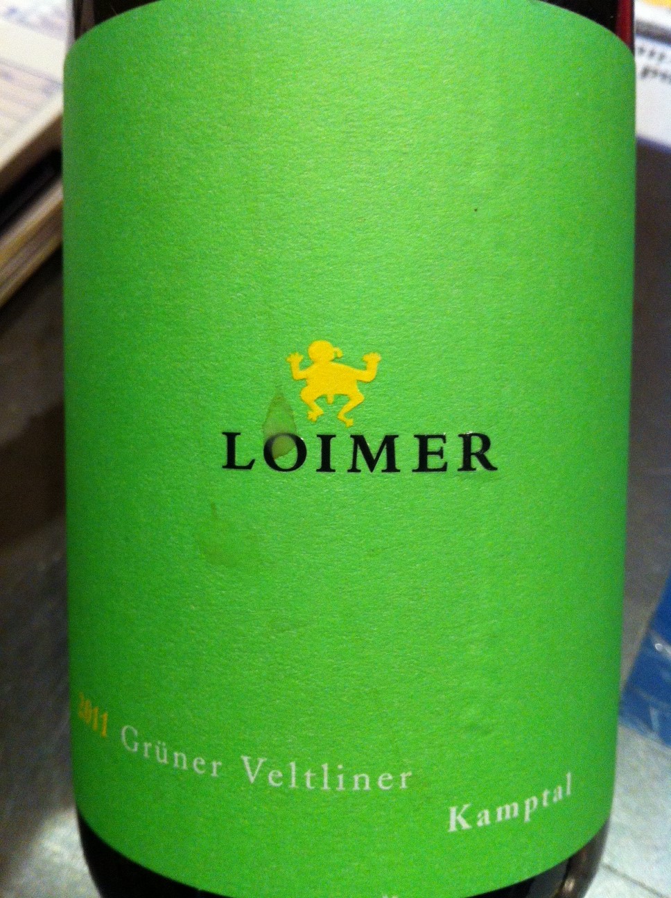 Ever have those moments when you can say you love your job? I did when I tried the Loimer 2011 Grüner Veltliner from Kamptal. You pretty green label, you!