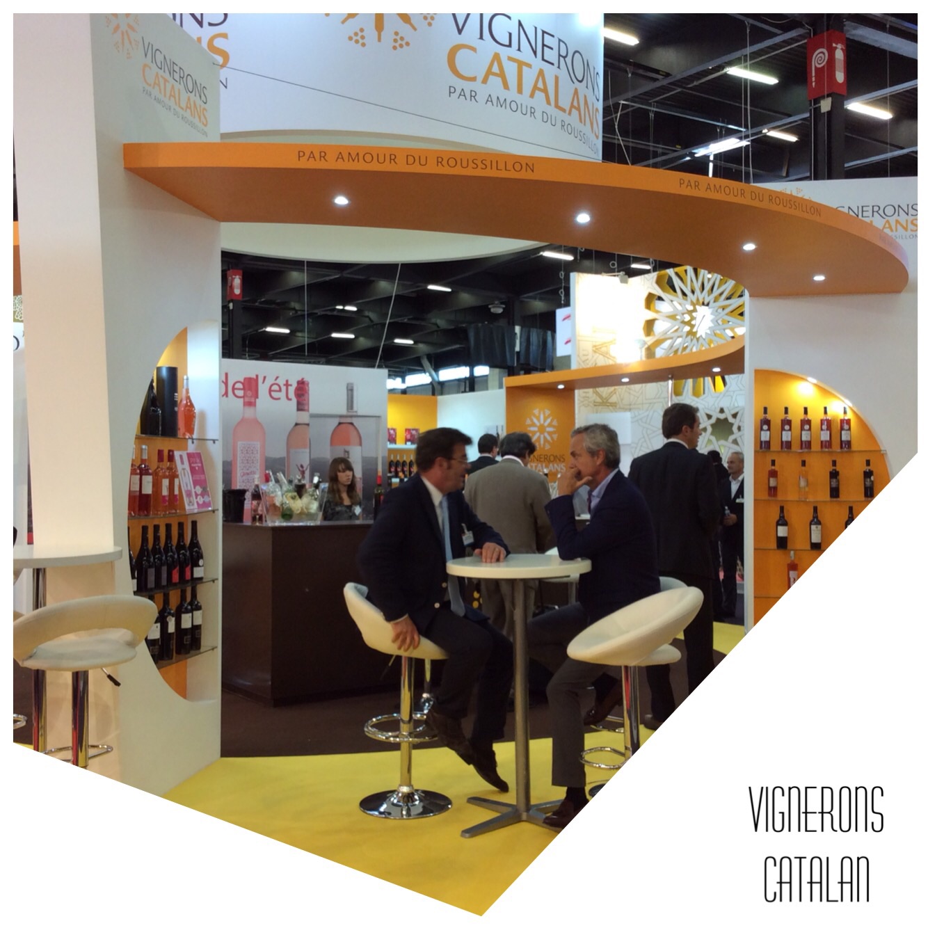 The Catalan Vignerons booth was bright and inviting. You know you have balls when you make the carpet the colour of sunshine, your theme shape is circular, and the lights remind you of the big fireball in the sky.