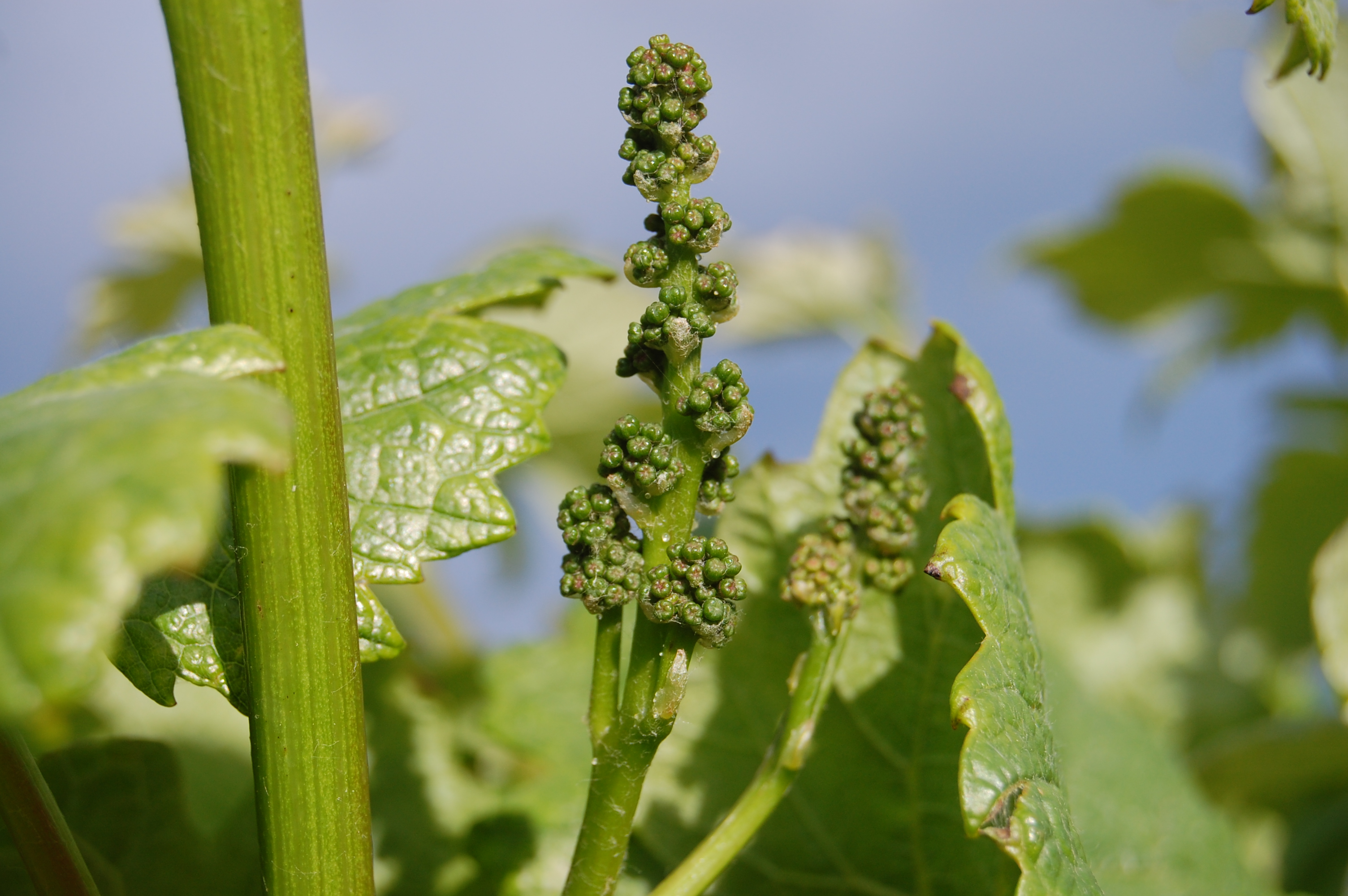 A vine’s flowers are hermaphrodite, and the flowering bunches are known as inflorescence. (See photo below.)